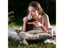 HARMONIE BYLIN & OVOCE Směs bylin a ovoce s chutí a vůní zralých malin. Temně růžové plody malin znali naši předkové už v neolitu a dodnes nám maliny připomínají prosluněné letní dny. Lahodná příchuť malin se snoubí s šípky, které podporují odolnost organismu. V šálku tohoto čaje se ukrývá chuť bezstarostného léta ztělesněného šťavnatou příchutí temně růžových malin. Sladkou chuť malin a malinového listu doplňuje lehce štiplavá, nakyslá chuť šípků. Svěží vůně čaje připomíná čerstvě nasbírané lesní plody.