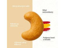 Solené pražené kešu ořechy pocházející z úrodných polí Murcie, jedné z nejkrásnějších oblastí Španělska - Murcia, oblast je známá svým slunným podnebím a bohatou půdou, která vytváří ideální podmínky pro pěstování nejkvalitnějších kešu ořechů. Balení 125 g.