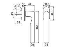 Hliníková okenní klika se zinkovým jádrem. Obsahuje zavírací mechanismus (integrovaná základní pojistka), která ztěžuje neoprávněné posunutí okenního kování zvenčí.