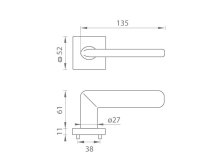 Rozetová klika na interiérové dveře s hranatou rozetou je vyrobena z materiálů vysoké kvality - zamak a je povrchově upravena. Rozeta má rozměry 52 x 52 mm a tloušťku pouze 5 mm.