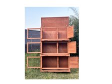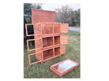 Dřevěná králíkárna s odklápěcí střechou pro snadný úklid. Výsuvný tác podestýlky pro snadné čištění. Výsuvné dělítko prostoru.