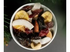 klikva 17 % (klikva "brusinka kanadská" 65 %, cukr, slunečnicový olej), jádra kešu ořechů 15 %, sušené fíky 14 % (fíky 97 %, rýžová mouka), mandle loupané pražené 12 %, sušené datle 12 %, pražené mandle 12 %, kokosové plátky 10 %, medový banán 8 % (banán 70 %, cukr 17 %, kokosový olej, med 2 %, banánové aroma)