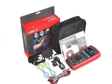 Multimetr UNI-T UT181A je inteligentní ruční multimetr s automatickým nebo ručním přepínáním rozsahů, který měří hodnoty efektivní (RMS), maximální, minimální nebo průměrné. Přístroj se řadí do vyšší třídy, vyniká kvalitním provedením a spolehlivostí a je vhodný i pro průmyslové použití. Voděodolnost a prachuvzdornost je v kategorii IP65. Displej je typu podsvícený grafický LCD, s maximálním rozlišením 4 5/6 digitů, maximální zobrazená hodnota je ± 60 000. Multimetr umožňuje měření AC/DC napětí a proudů, odporu, test diod, test spojitosti, měření kapacity, frekvence, střídy, teploty, vodivosti, porovnávací měření, měření relativních hodnot, detekce špiček a záznam dat v počtu až 20 000 údajů. Přístroj umožňují ukládání dat do PC pomocí připojení přes adaptér USB s optickým oddělením, nebo pomocí Bluetooth. Součástí displeje je analogový ukazatel - bargraf s 61dílky. Multimetr obsahuje interní hodiny, které zobrazují čas a datum, které je možné automaticky přiřadit uloženým vzorků naměřených hodnot v intervalu 1sec až 1 hod, včetně doby po kterou se má ukládat (až dny). Možnost zařazení dolnopropustného filtru pro měření na střídačích a generátorech. Možnost dvoukanálového měření teplot. Jištění proudových rozsahů je provedeno trubičkovými tavnými pojistkami (rozsah 10 A pojistkou FF 10 A H/1 000 V (10 x 38 mm); rozsah mA/µA pojistkou FF 800 mA H/600 V (6 x 32 mm)). Přístroj umí testovat své vlastní pojistky (bez otevření přístroje). Napájení multimetru je provedeno lithiovým akumulátorem 7,4 V/2 000 mAh. Součástí balení jsou měřící kabely s hroty v bezpečnostní kategorii CAT III 1 000 V a CAT IV 600 V.