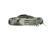 Kompaktní skládací nožík z nerezové oceli je spolehlivým pomocníkem pro kempování, turistiku a další outdoorové aktivity. Nerezové provedení zajišťuje pevnost a odolnost, zatímco plastové rukojeti zpříjemňují úchop. Nůž lze rozdělit na dvě části otevřením lžíce a vidličky. První část obsahuje vidličku, otvírák na plechovky, otvírák na lahve a vývrtku. Druhá část nabízí lžíci, úderník a samotnou čepel nože. Všechny nástroje jsou vyrobeny z nerezové oceli, která zaručuje dlouhou životnost a odolnost vůči korozi. Nožík je navíc vybaven kroužkem pro připevnění na klíčenku nebo batoh, ale díky malým rozměrům se pohodlně vejde i do kapsy. Tento praktický nástroj ocení každý, kdo hledá univerzální a odolné vybavení pro pobyt v přírodě.