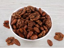 Ochutnejte voňavý mix vlašských ořechů a mandlí, které jsou zapečeny v medu, karamelu a kokosovém cukru. Aby se lahodná koupel oříškům ještě vylepšila, provoněla se celá směs cejlonskou skořicovou kůrou, hřebíčkem a badyánem. Oříškový wellness je završen pečením dozlatova a voilà, vynikající vánoční ořechy byly na světě.