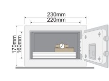 Malý přenosný sejf s digitální klávesnicí a s otvíráním klikou. Sejf disponuje funkcí na nízký stav baterií, funkce zablokování zámku. Součástí balení jsou 2 bezpečnostní klíče a kotevní šrouby pro instalaci sejfu. Malá hmotnost sejfu umožňují mít s sebou tento sejf na cestách.