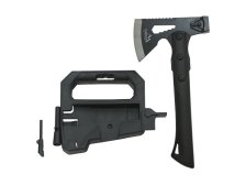 Kompaktní sekera Steel Black je ideálním doplňkem pro camping, turistiku a další outdoorové aktivity. Je navržena tak, aby byla lehká a snadno přenosná. Sekera je vyrobena z odolné nerezové oceli 3Cr13, která je vhodná pro náročné zacházení, snadno se ostří a je odolná proti korozi. Povrch je černěný a dodává stylový vzhled s dodatečnou povrchovou ochranou. Ostří sekery má délku 8,5 cm, výška sekery je 14 cm, síla materiálu sekery je 5 mm. Ergonomické tvarování plastové rukojeti zajistí pohodlný a pevný úchop, hmotnost 490g potom umožňuje snadnou manipulaci. Celková délka sekery včetně rukojeti je 27 cm. Čelní strana sekery je opatřena vroubkováním, které je užitečné pro použití spolu s hořčíkovou tyčkou, součástí čepele je rovněž univerzální klíč na matice. Opačná strana nástroje je zakončená kladívkem s plochou 2 x 2,7 cm. Sekera je uložena v plastovém pouzdře a zajištěna pojistnou páčkou. Pouzdro lze zavěsit na háček, případně patřičným způsobem připevnit např. na zeď. Pouzdro je rovněž opatřeno madlem pro pohodlné přenášení. Bok pouzdra je navíc opatřen hořčíkovým škrtadlem pro rozdělávání ohně, které je kombinováno s píšťalkou.