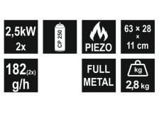 - spotřeba plynu: 2 x 182 g / hod