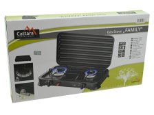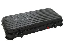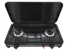 Plynový vařič pro ohřívání a přípravu pokrmů v kempu i na zahradě. Snadné použití vařiče ve venkovním prostředí je zajištěno 2 x hořáky s piezoelektrickým zapalováním a plynule regulovatelným průtokem plynu u každého hořáku zvlášť. Konstrukce vařiče je vyrobena z kovu, zaručuje tak maximální odolnost. Vrchní část je opatřena sklápěcím víkem, bránícímu proti nepříznivému větru. Víko lze v případě potřeby zcela sejmout. Zařízení je určené pro připojení k plynové nádobě, kterou lze připojit na zadní straně zařízení.