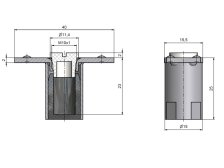 Upevňovací element závěsu OZ se svorníkem M10x1 pro ocelovou zárubeň. Bradavky slouží pro snadné přivaření. Plastový "špunt" zabrání znečištění maltou. Vložka je vyrobena ze železa.