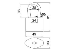 Ocelový zámek jednoduché lamelové konstrukce. Vynikající vlastnosti ve vnějším prostředí. Vyjímatelný třmen, jištěný v osmi bodech. Vložka zámku s 5lamelovými stavítky.