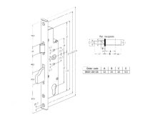 Zadlabací zámek SOBINCO 8601-20-35. Čelo zámku ploché, zámek je pravo - levý, pro cylindrickou vložku. Zámek je vhodný pro profilové dveře (plast, hliník). Výklopná závora.