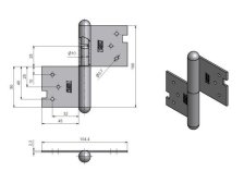 Závěs (pant) k otočnému spojení dveří s dřevěnou zárubní. Spodní i vrchní díl je k zadlabání (nutno zajistit hřebíky bez hlavičky).