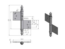 Závěs (pant) k otočnému spojení dveří s dřevěnou zárubní. Spodní i vrchní díl je k zadlabání (nutno zajistit hřebíky bez hlavičky). Čep závěsu je opatřen ozdobným ukončením UR14. Velmi vhodný při rekonstrukcích starých dveří.