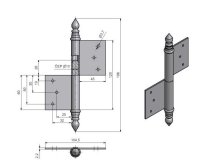 Závěs (pant) k otočnému spojení dveří s dřevěnou zárubní. Spodní i vrchní díl je k zadlabání (nutno zajistit hřebíky bez hlavičky). Čep závěsu je opatřen ozdobným ukončením UR14. Velmi vhodný při rekonstrukcích starých dveří.