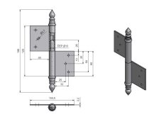 Závěs (pant) k otočnému spojení dveří s dřevěnou zárubní. Spodní i vrchní díl je k zadlabání (nutno zajistit hřebíky bez hlavičky). Čep závěsu je opatřen ozdobným ukončením UR14. Velmi vhodný při rekonstrukcích starých dveří.