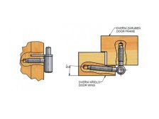Komplet závěsu určený pro otočné spojení dřevěných dveří s polodrážkou a dřevěné zárubně. Závěs má volně vložený čep.