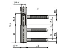 Závěs dveřní 80/10 SD M8 x 50 - 17,5 PH spodní díl, pravo-levý, nikl satén