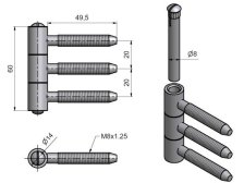 Upřesnění parametrů pro Závěs dveřní třídílný 14 x 60 M8/50 kompletní závěs, pravo-levý, zinek žlutý