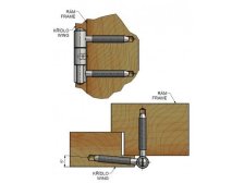 Závěs pro otočné spojení dřevěných dveří s dřevěnou zárubní.
