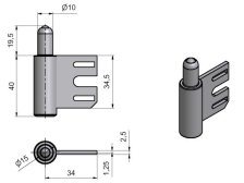 › Železářství › Kliky, okenní a dveřní kování, panty › Závěsy (panty) › Závěsy dveřní › Závěs dveřní TRIO 15 SD 34 OZ spodní díl, pravo-levý, zinek žlutý