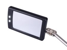 Zrcátko na teleskopické násadě se dvěma LEDkami. Teleskopicá část z nerezové oceli, ergonomická pogumovaná rukojeť. Napájení LED osvětlení 2 x baterie CR 2032 (součástí balení).